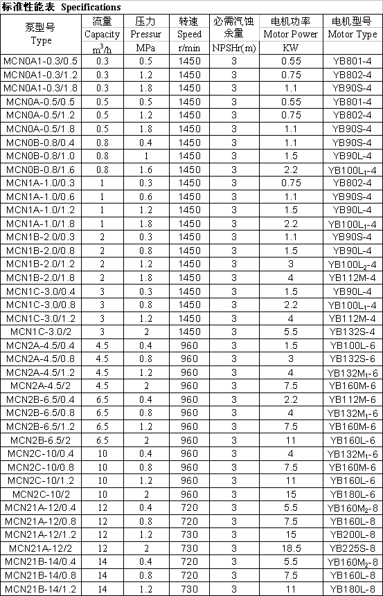 MCN無軸封永磁傳動(dòng)高粘度齒輪泵參數(shù)表